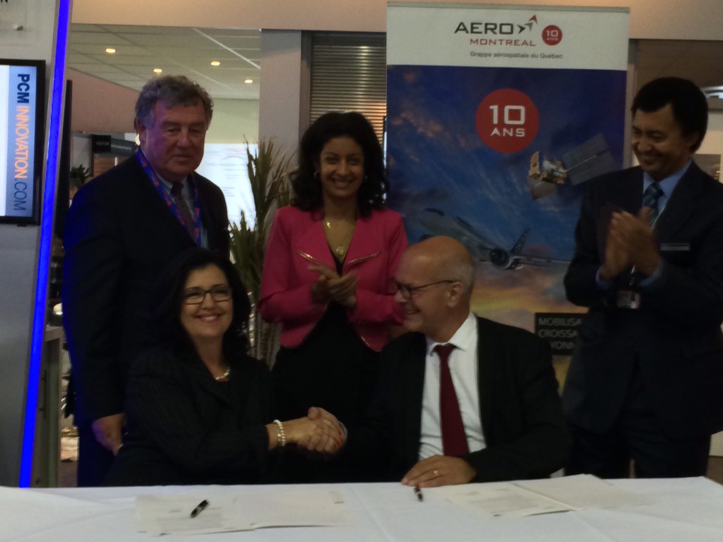 Farnborough (United Kingdom), July 12, 2016 – Aéro Montréal, Québec's aerospace cluster, today signed a sub-agreement at the 2016 Farnborough International Airshow with Aerospace Valley, the French competitiveness cluster, regarding the organization of a case study on aircraft recycling for Québec students. Presentations by the finalists (publicly available) will take place on October 1, 2016, during an open house event at the École de technologie supérieure (ÉTS) in Montréal during International Civil Aviation Week organized by Aéroports de Montréal, Aéro Montréal, the Board of Trade of Metropolitan Montréal and Montréal International.
